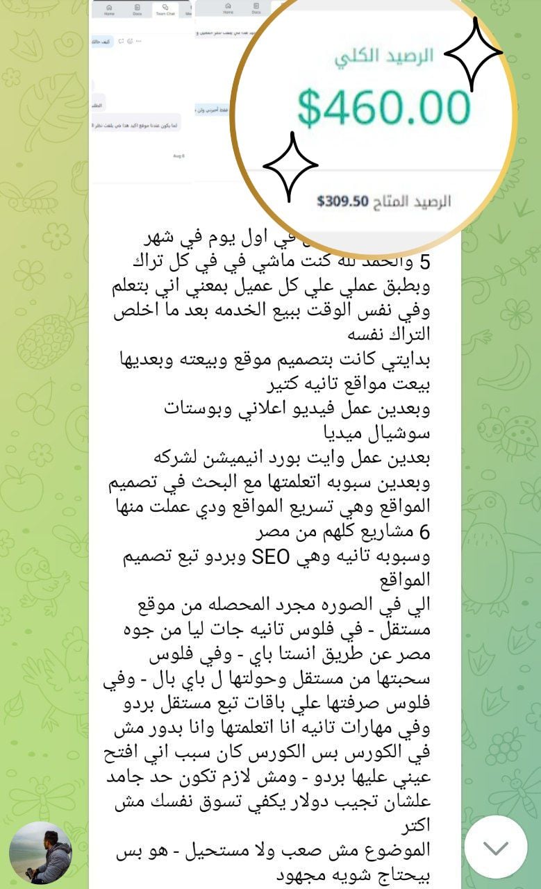 - بشاركك بأسراري اللي خلتني اكسب آلاف الدولارات ” ومعظمهم هيبقي قدامك عملي ولايف معاك خطوة بخطوة “