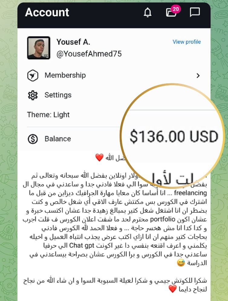 الي بدأو رحلتهم في الوصول لأول دولار اونلاين و وصلو بالفعل لأول دولار بيشاركونا بمكاسبهم و قصصهم في الوصول لأول دولار اونلاين